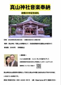 6月28日(日)午後2時より 真山神社で音楽奉納